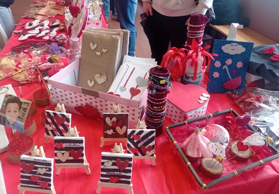 Para o Mercadinho elaboraram-se: velas, rosas, marcadores de livros, sabonetes, blocos de notas, jogos do galo, aguarelas, postais, molduras, guarda- joias, quadros alusivos ao São Valentim, porta-lápis, vasos de suculentas, bolos de cenoura, chocolate e iogurte, frascos de rebuçados e de fruta, caixas e copinhos de bombons, gelatina, ...